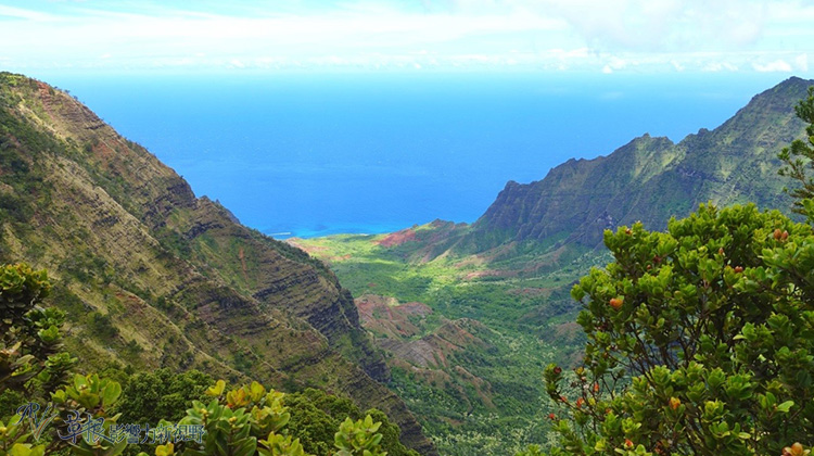此峽谷名叫Kalalau Valley,同時也是西半部海岸線Na Pali最大的峽谷,一直到1919年都還有人居住。想要到底下的海邊,得爬上兩天,約11英里的路程才能夠看到。
