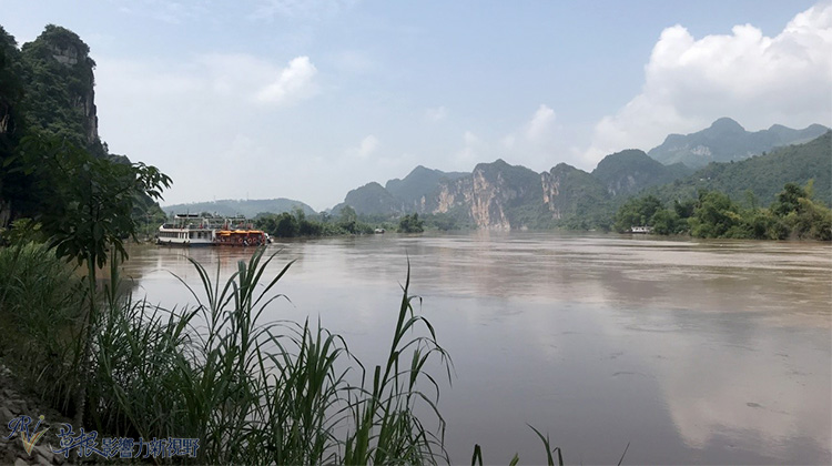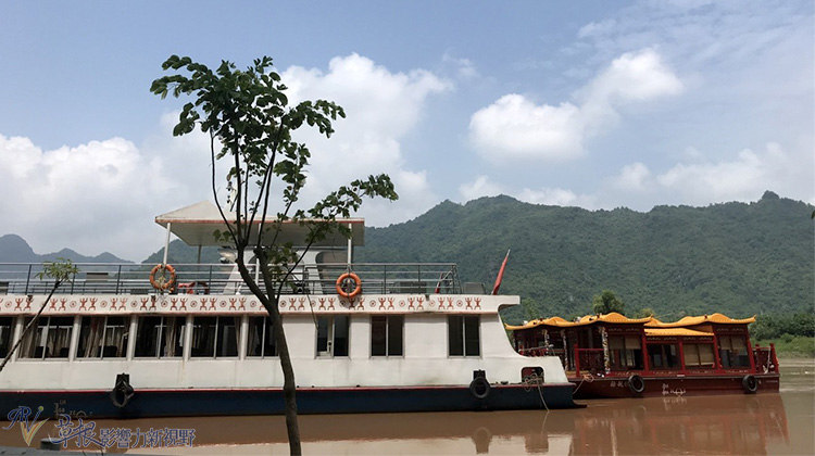 在遊客中心旁停泊遊覽左江風景參觀岩畫的遊船