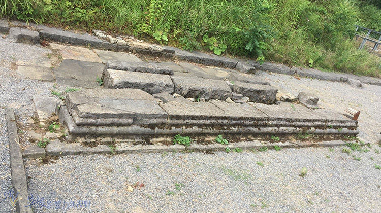 長條石墩,可能作為寺廟用途,其上擺置神明