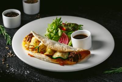 健康、養生趨勢興起,蔬食潮流盛行,Port23餐廳結合知名藝人賈永婕也愛的Beyond Meat與台灣在地食材研發系列餐點,主廚使用墨西哥餅皮鋪上一層起士、清爽口味的素食莎莎醬、香烤Beyond Meat絞肉、最後撒上起士絲進火爐烘烤至餅皮酥脆的「義式半月起司莎莎烤餅」;以及將Beyond Meat與切碎的綜合蕈菇乾煸翻炒出香氣,加入新鮮迷迭香與百里香攪拌後搓成肉丸,與特製米蘭風番茄醬汁、Q彈圓麵下鍋燉煮而成的「手工肉丸綜合野菇圓麵佐米蘭番茄醬汁」,多層次豐富滋味絕對讓你難忘!