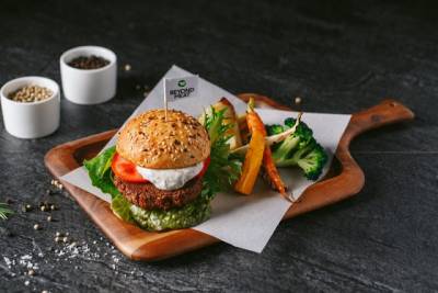 主廚更延續變化,手工捏製大塊肉餅沾上薄薄麵粉、蛋液、麵包粉後下鍋油炸,以日式炸豬排烹調手法呈現外酥內嫩迷人口感,淋上帶有獨特香味的柳松菇白醬,濃郁滑嫩交錯的「酥炸肉餅搭燒烤時蔬佐柳松菇白醬」令人一吃就上癮;最經典的漢堡給你最驚艷的幸福感,超夯Beyond Meat漢堡肉搭配嚴選小農溫室養殖水耕嫩葉蔬菜、新鮮牛番茄,再淋上特調松露美乃滋的「水耕蔬菜漢堡搭燒烤時蔬佐松露美乃滋」,豐厚肉汁比真實牛肉更美味、鮮甜無負擔,顛覆你的味蕾想像!